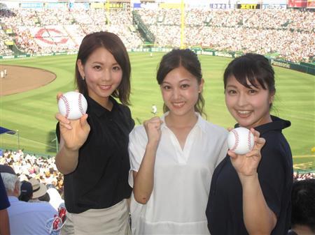 猛暑の中、高校野球中継で奮闘する(左から)ヒロド歩美アナと川添佳穂アナ