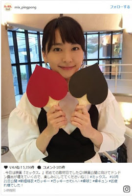 热烈推荐2017夏報道:映画『ミックス。』(10月21日公開)の公式インスタグラムが6日に更新され、主演を務める新垣結衣が、ハート型の卓球ラケットを手にした姿をアップ。キュートなラケットとニッコリ笑う新垣の笑顔に“胸キュン”したファンの声で溢れている。