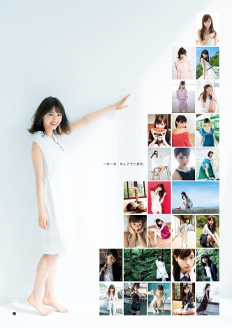 同号は表紙の西野のほか、センターグラビアに若月佑美(22)、巻末グラビアに与田祐希(16)、そして8ページの特別ミニフォトブックに齋藤飛鳥と、総勢25ページのグラビアすべてに乃木坂46のメンバーが登場。至高の美少女カルテットが、誌面を華やかに彩った。過去の掲載写真も満載の西野七瀬グラビア