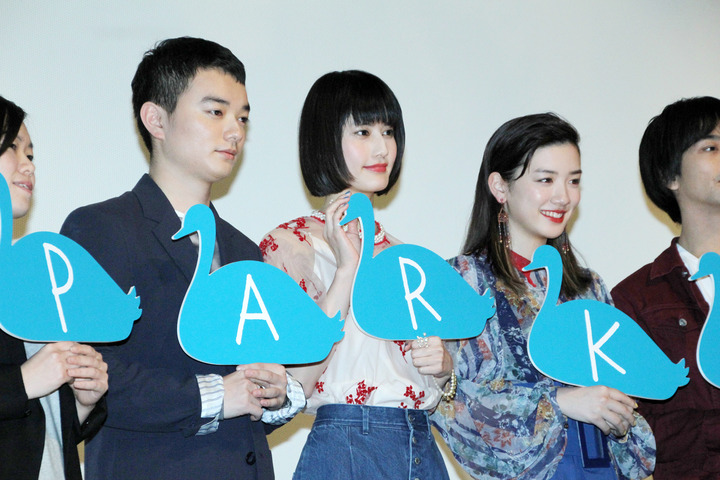 イベントには、共演の永野芽郁さん、染谷将太さん、音楽監修を務めたトクマルシューゴさん、瀬田監督も登場した。完成作品を見た永野さんは、自身の役について「演じていてもそうだったんですが、不思議な魅力を持った女の子だったんで、ちゃんと映画の中でそれが出てよかった」と笑顔。劇中でラップを披露するという染谷さんは「音楽の練習がありますと言われて音楽スタジオに行ったら、そこで監督とトクマルさんと『どうしましょうか』と言われて、そこから歌詞を考えました」と振り返っていた。「PARKS パークス」は、開園100周年を迎える井の頭恩賜公園の公式事業企画で製作。吉祥寺に住む大学生・純(橋本さん)が、高校生のハル(永野さん)とともにハルの亡くなった父の昔の恋人・佐知子を探すことになる。2人は、佐知子の孫のトキオ(染谷さん)と出会い、父と佐知子が歌っているオープンリールを発見。途切れている歌を3人で完成させようと決意する……という物語。22日から全国で順次公開。