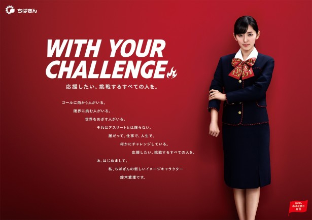 千葉銀行は全国に190店舗を擁し、全ての店舗で銀行員に扮した鈴木がポスターなどでお目見えすることとなる。鈴木愛理は育った地元の千葉銀行のイメージキャラクターに就任したことに対して「本当にうれしく思っています」とコメント。“ちばぎん”のことしのテーマは“WITH YOUR CHALLENGE。挑戦する全ての人を応援したい!”。 千葉銀行の制服を着て、モフモフな着ぐるみ“ひまりん”のと一緒に笑顔でガッツポーズを見せる鈴木愛理