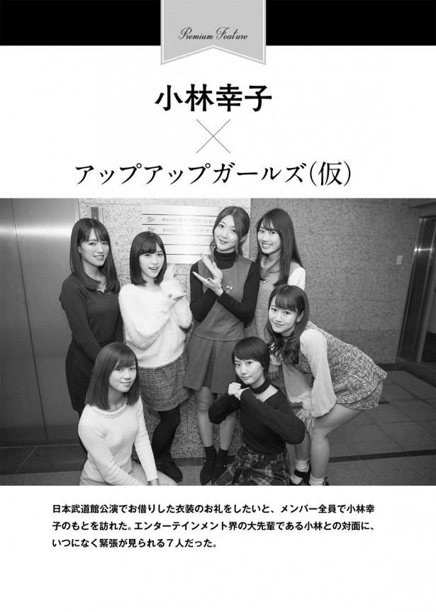 2011年の活動開始以降、熱量の高いライブパフォーマンスが話題を呼び、また富士山山頂や陸の孤島でもライブを行うなどで“アイドル界のオンリーワン”としての存在感を高めてきたアップアップガールズ(仮)。2016年11月には、アイドルグループにとって憧れの場所である日本武道館での単独ライブを、インディーズアイドルとして初めて開催し話題になったことも記憶に新しい。小林幸子、RENA(格闘家)、和田彩花&工藤遥との座談会なども掲載