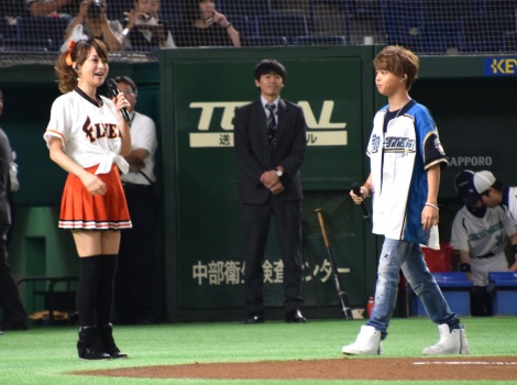 渡辺美奈代、東京ドームでSPライブ 日本ハム・杉谷拳士と決めポーズ