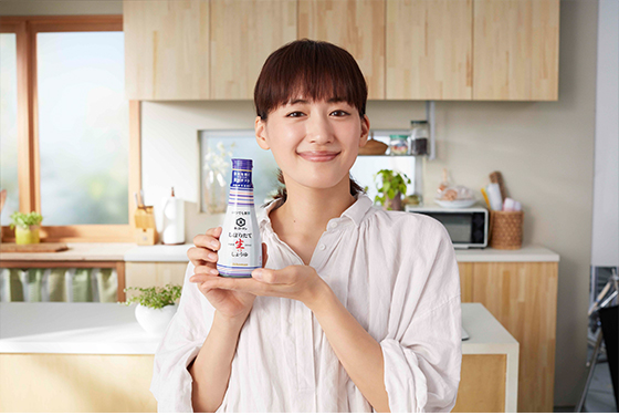 新CM『はるかの初体験手巻き寿司間違ってました』篇のストーリーと見どころ 綾瀬はるかさんが食卓で「いつでも新鮮しぼりたて生しょうゆ」を手に取るシーンから始まります。心の中で歌を歌います。 “「生しょうゆ」って、どんなもんかな?”“たいしたことないって思ってた” 手巻き寿司に直接ぽたっと生しょうゆを垂らして、一気に口にほおばると・・・ “間違ってました!” “んま~っ!” お茶目な綾瀬さんの満面の笑みで締めくくります。 「いつでも新鮮しぼりたて生しょうゆ」の“鮮やかな色”と“容器の使いやすさ”を訴求しながら、綾瀬さんの自然な“おいしい表情”をスローモーションで表現しています。PR